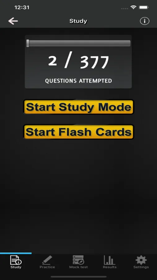 - Four Study Modes: Study, Practice, Flashcard and Stress Test