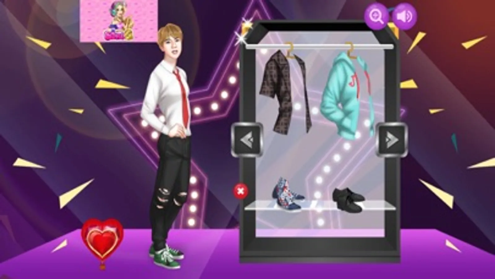 Pair the selected outfits with cool sneakers, straw hats, beanies, chains, sunnies, and more. Keep in mind that with every new location new clothing pieces and accessories are available… we are sure you'd like to discover them all! Have a great time playing the boys backstage dress up game.