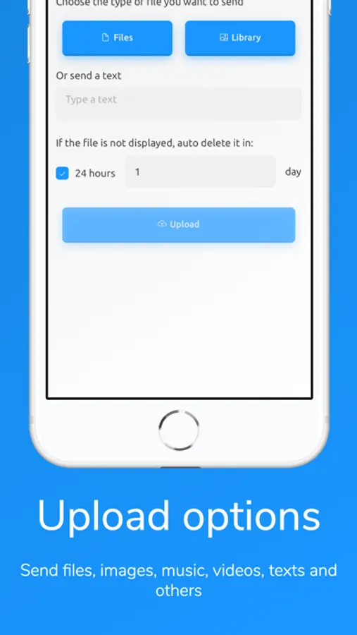 Send files, photos, videos and texts simply and securely. You choose your file, a unique key is generated for you to share and that's it, the other person downloads it on any device. After that the file is automatically deleted.