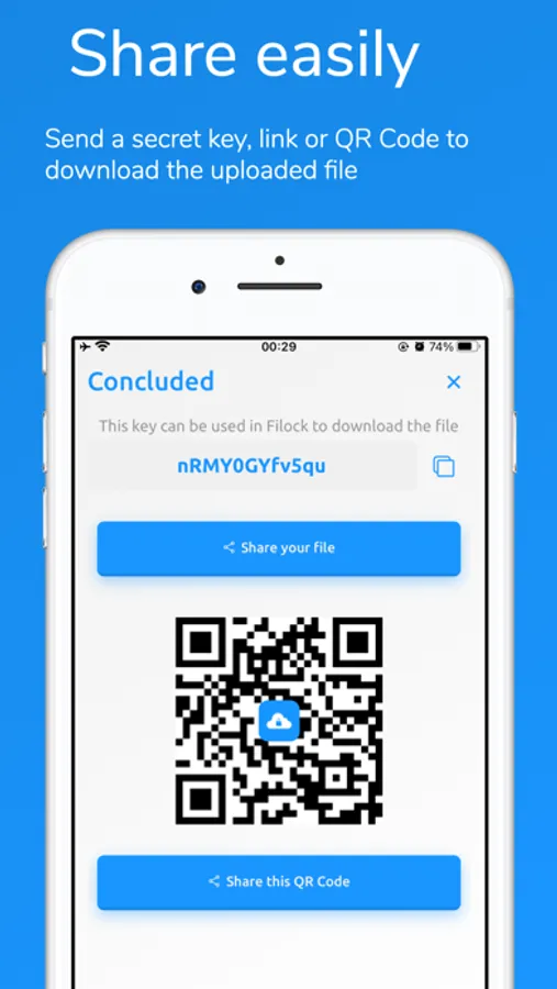 With Filock you can upload any file and easily share it with your friends in the most secure way possible.