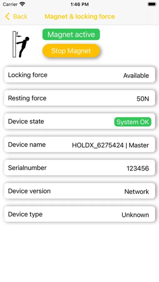 Furthermore, the magnet can be started and stopped with the assigned password.