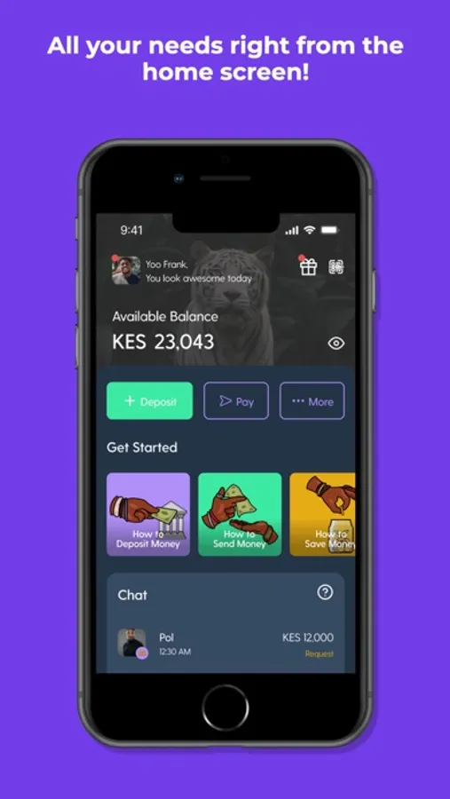 Open an account in 240 seconds. Send money, save and spend with with an exciting social interface.