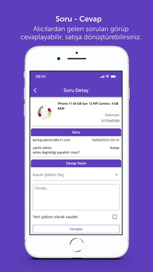 n11 mağazalarına özel bu uygulama ile Mağaza Yönetim Paneli'ne telefonunuzdan kolayca ulaşabilirsiniz. Mağazanıza gelen sorulardan, yeni siparişlerden, duyurulardan ve iade/iptal taleplerinden anlık bildirimlerle haberdar olabilir, süreçleri hızlı bir şekilde takip edebilirsiniz.