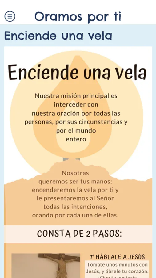- Oramos por ti: enciende aquí tu vela y déjanos tu petición.