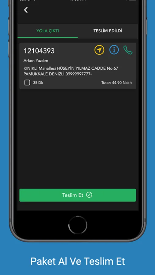 - Kuryeleriniz uygulama üzerinden lokasyon özelliği ile sadece dükkan içindeyken paket alabilir paketi müşteriye teslim ettiklerinde anlık müşterideyken paket durumunu teslim edildiye çekebilir veya paket detaylarını sorgulayabilirler.