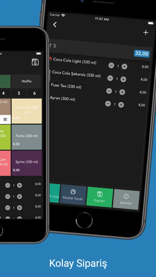 - Garsonlarınız sipariş alabilir yetkisi dahilinde ürün ikram edebilir hesap, mutfak fişi yazdırabilir veya masa aktarma gibi birçok işlemi tek uygulama üzerinden yönetebilir.