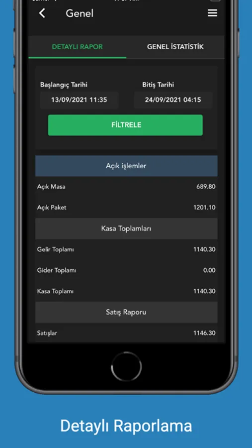 - Raporlama ekranları ile günlük, saatlik veya belirli tarihler aralığında rapor alabilir tüm harcama, satış, gider gibi detaylara anlık ulaşabilirler.