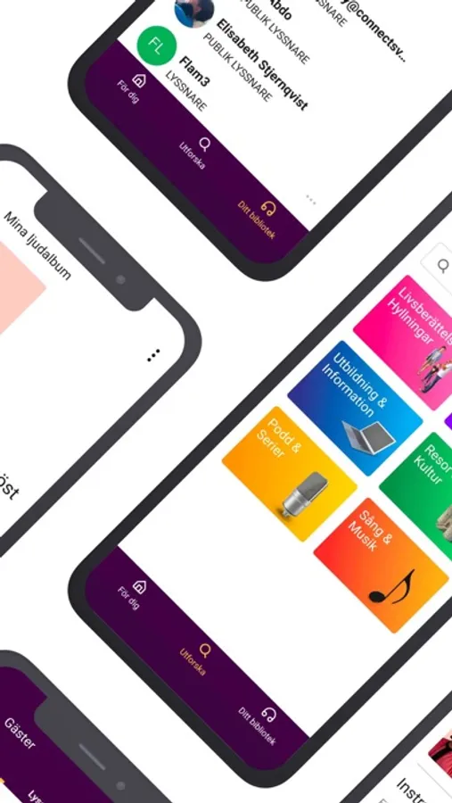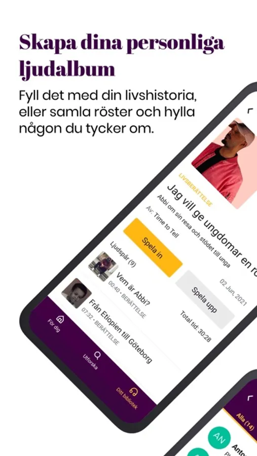 With the inspiration from audiobooks, podcasts, playlists and photobooks you can easily create your own personal audio album with your life story, other people’s voices or to gather greeting and memories to make the day for someone.