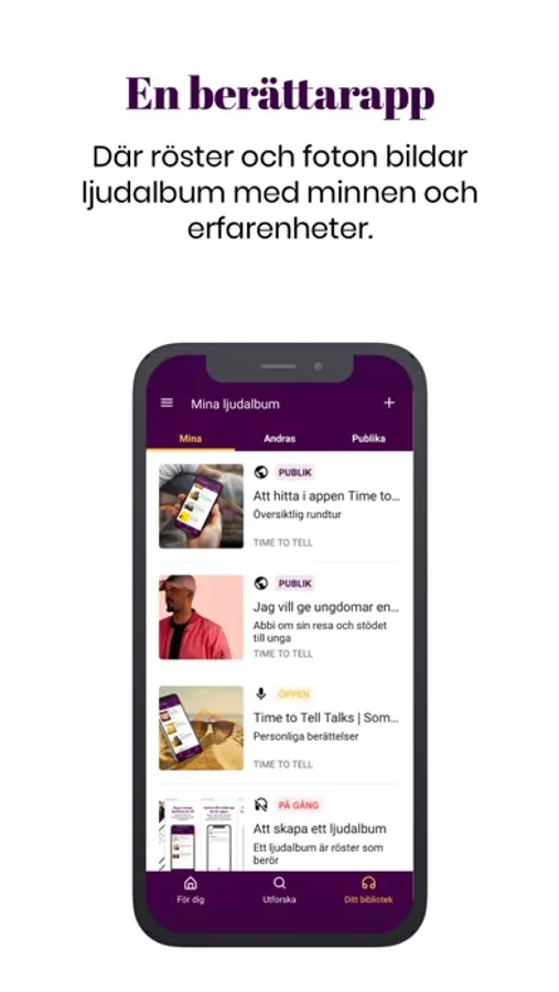 Time to Tell is the storytelling app that gives you the opportunity to record and add voices, photos and texts packaged into audio albums to share privately or publicly on the platform.