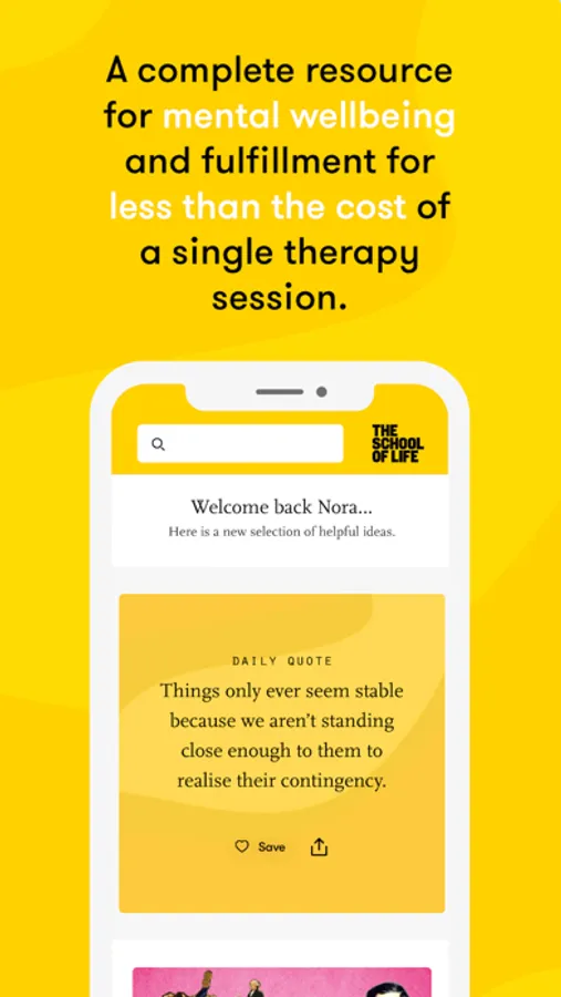 The School of Life App is a digital resource for making time for your mental wellbeing. It’s a tool for understanding more about yourself, making positive life-changes, and discovering the elements of better mental health and emotional maturity.