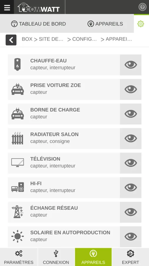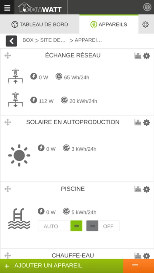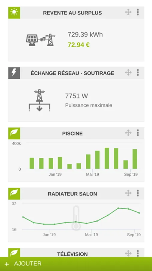 - Suivi de la consommation électrique détaillée de votre logement et par appareil connecté