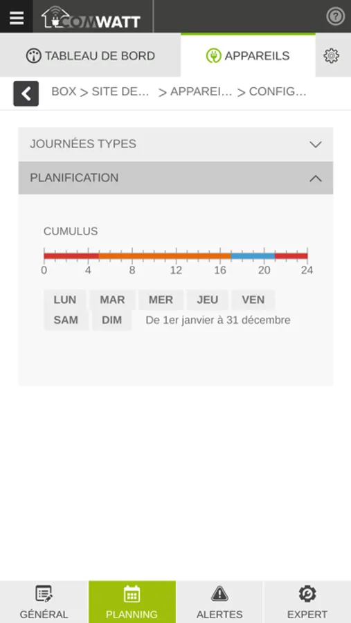 - Planification intelligente de vos appareils les plus énergivores, afin qu’ils consomment l'énergie au bon moment en cas d’installation photovoltaïque