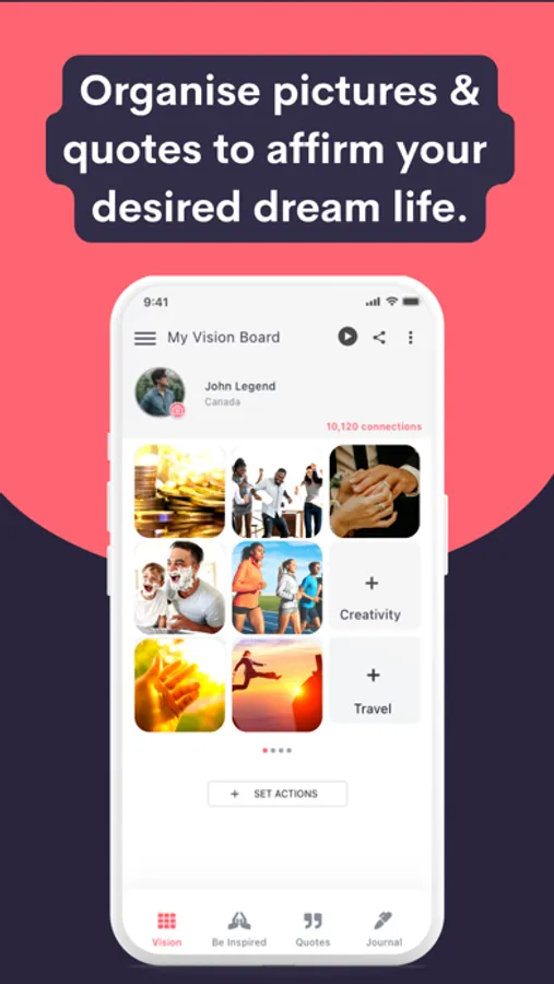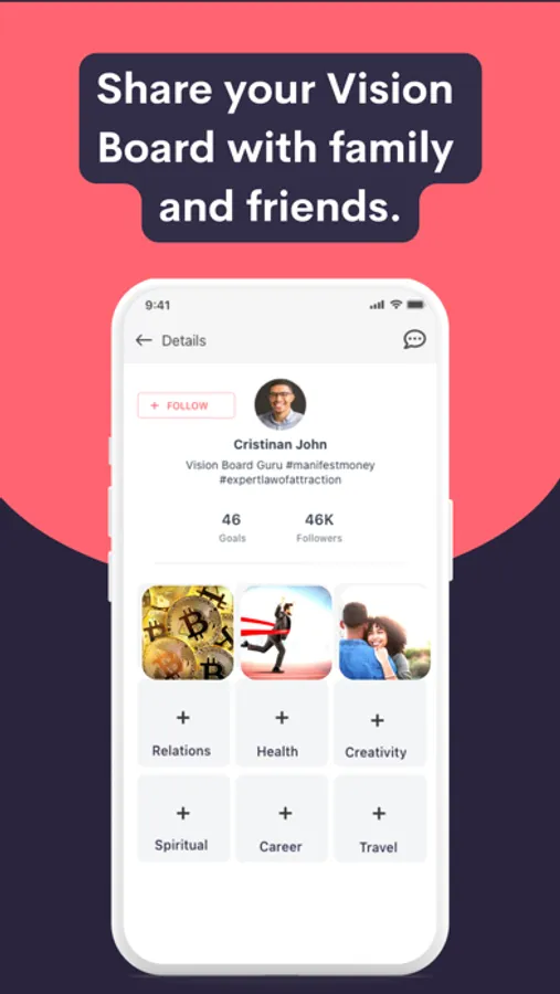 - Share and collaborate on your Vision Board goals (images) with your Friends