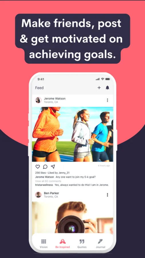Create feed posts in our community feed and share your experiences with like minded people and get instant feedback on your Vision Board Goals. You will be able to see the post and comment and like it.