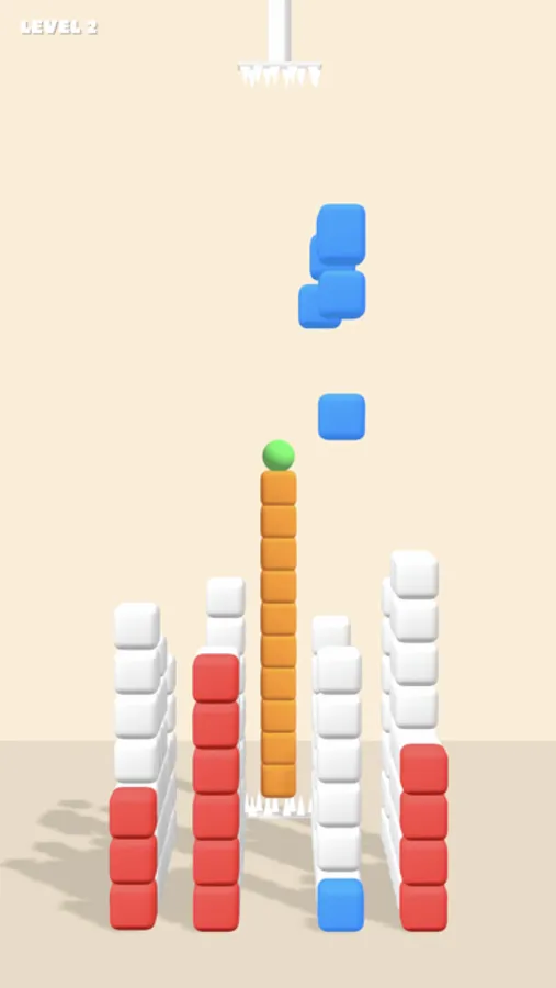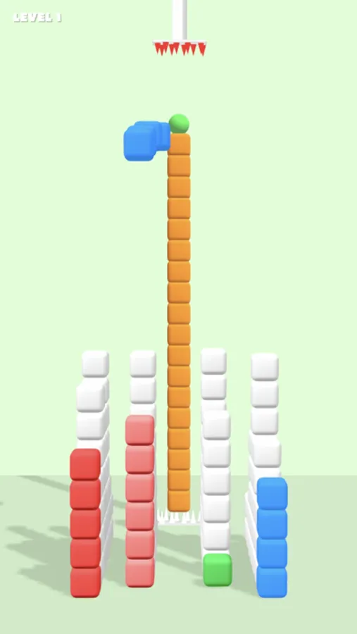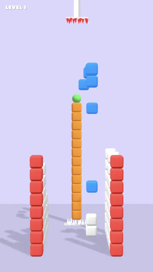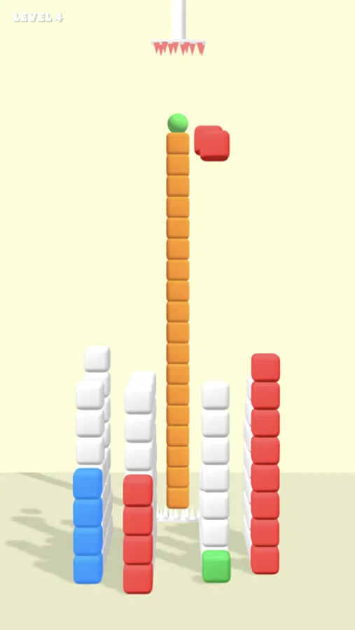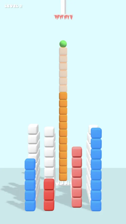 Use the red, blue and other cubes to keep the player between spikes and safe. So satisfying!
