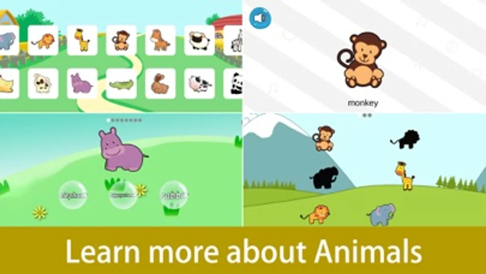 Zoo: including understanding animals, animal puzzles, dragging animals, finding names for animals.
