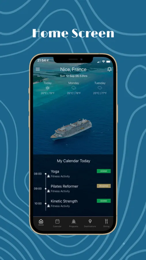 The MyWorldNavigator app focuses on ease of viewing information that is on the desktop version such as the ship's itinerary, requesting to book programming, syncing their Navigator calendar with their personal calendar, Face / Touch ID, and more. Login credentials for the mobile app match the desktop version.