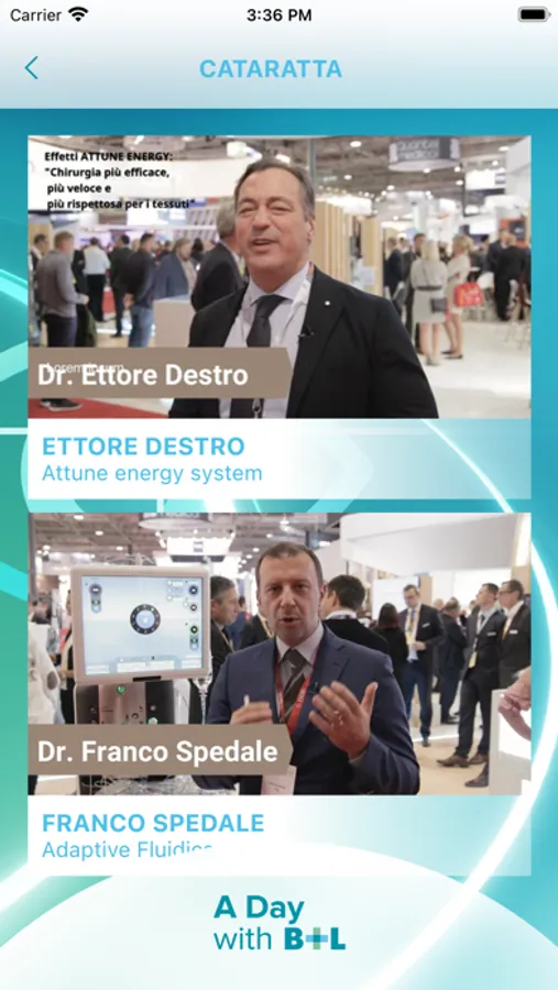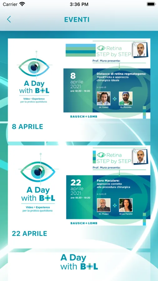 L'applicazione consente di vivere un’esperienza live e on demand con i chirurghi che collaborano con BAUSCH+LOMB. Verranno pubblicate sull’applicazione A DAY WITH video di chirurgia, di training e di aggiornamento scientifico sulle patologie oculari provenienti dalle sale operatorie di unità complesse di oftalmologia che utilizzano i prodotti BAUSCH+LOMB.