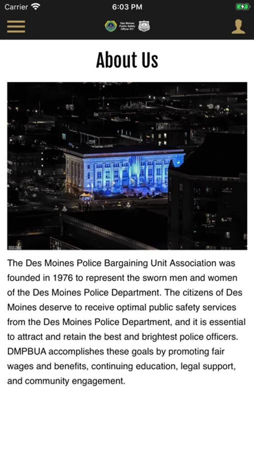 This app is intended as a communications tool between the leadership of the Des Moines PBUA, its membership and the citizens they serve. To that end, the app includes: