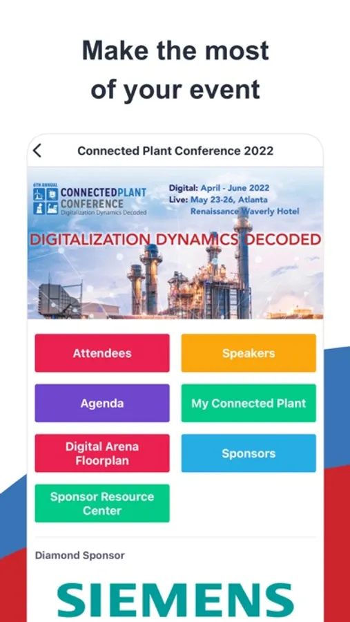 Connected Plant Conference digital platform. Network, plan your visit, watch sessions, generate leads and talk with our sponsors.