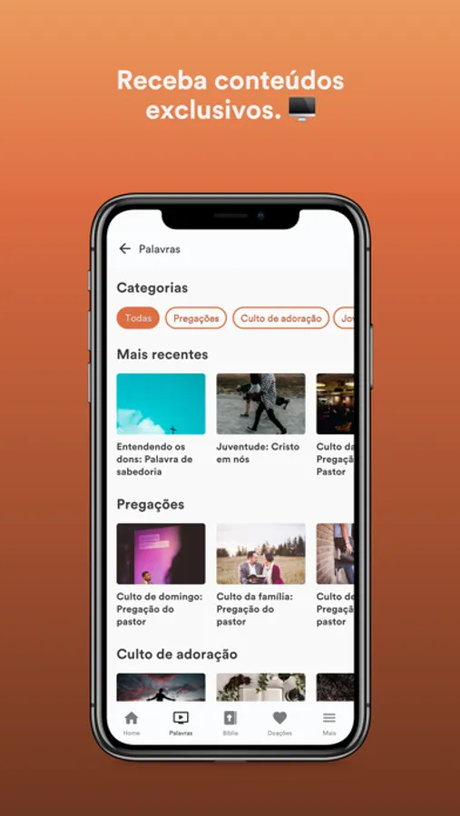 - Siga a agenda e fique por dentro de tudo que acontece na igreja, inscreva-se em eventos e tenha seus ingressos sempre com você.