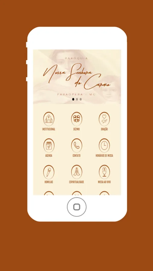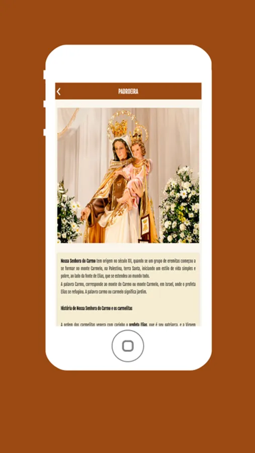 O Aplicativo exibe as principais informações da Paróquia Nossa Senhora do Carmo.