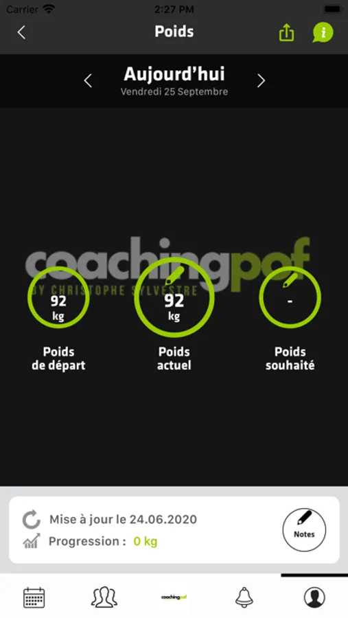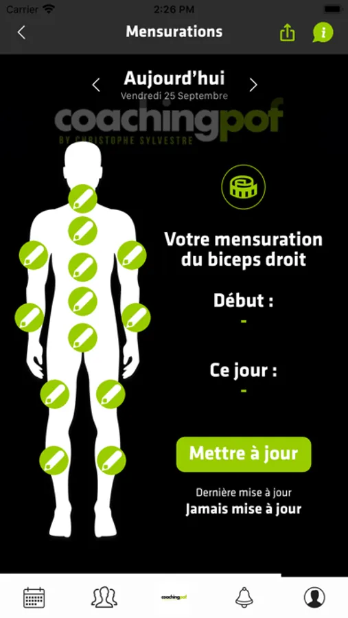 Notre application a la capacité de se synchroniser avec Santé pour afficher les données de santé du jour dans l’écran d’activité de l’utilisateur. Pour mieux suivre les entraînements, l’utilisateur peut partager les données avec le coach.