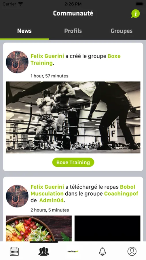 Seul c'est bien, ensemble c'est mieux partagez vos entraînements et recettes avec vosamis où d'autres utilisateurs sur notre espace communauté en groupe ou en privé.