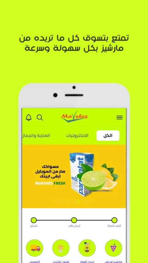 يمكنك تطبيق اهوار -Marshes التسوق من منتجات متنوعة ومميزة ويوفر لك خدمة توفير الاطمعه ومنتجات السوبر ماركت عبر خدمة مارشيز فريش بالإضافة الى امكانية طلب الخدمات عن طريق خبراء اهواء المميزين
