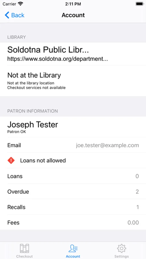 2. Select the card you want to use, and tap the "Start" button. In the checkout screen, use the “+” button to checkout library items.