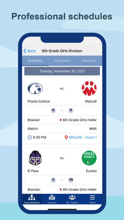 Bracket Team gives coaches, parents and fans real time tournament information. Users can: