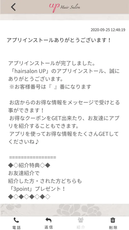hairsalon UPのアプリをSNSを通じてお友達に紹介する事ができます。