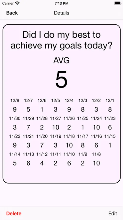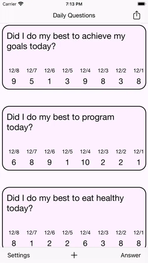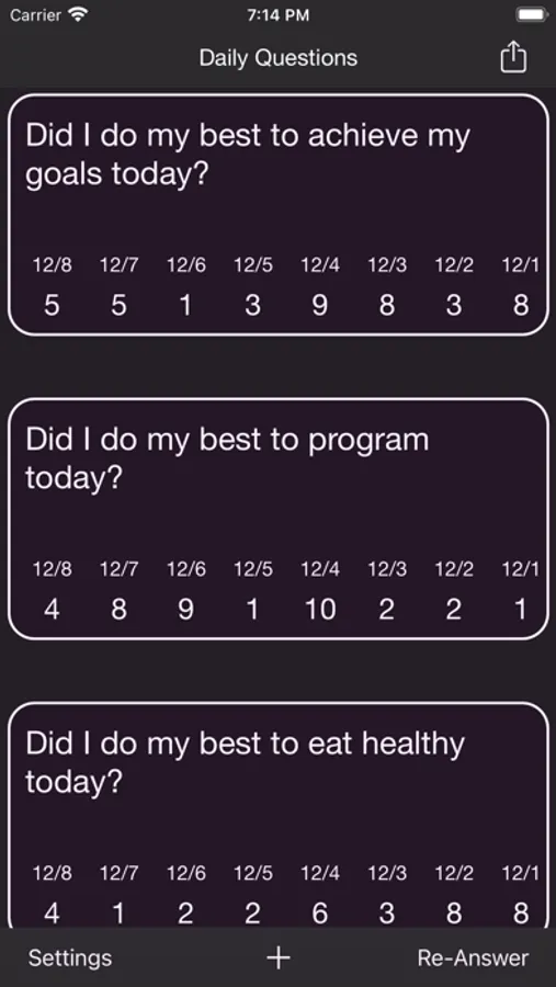 Become more accountable to your goals by asking yourself simple questions every day and then rating yourself from 1-10, then share your answers with friends. Inspired by the book "Triggers: Creating Behavior That Lasts -- Becoming the Person You Want to Be" by Marshall Goldsmith.