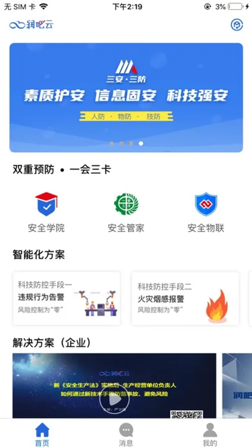 润吧云企业服务APP,基于大数据分析、挖掘,为企业提供精准服务的工具平台。具体服务产品和工具,包括“安全学院、安全管家、招投标、中标”。“安全学院”为企业提供生产安全、建筑安全、交通安全、消防安全的视频专题培训,提供员工课程学习统计分析;“安全管家”为企业提供“班前会、动工卡、体检卡、应急卡”的信息提报、统计分析;“招投标”为企业提供招投标的商机情报,支持按照条件精准订阅;“中标”为企业提供中标结果分析,精准订阅。