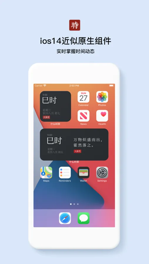 什么时辰,是一个高颜值展示十二时辰的应用。提供3中不同尺寸的桌面小组件,适配了黑暗模式。让你可以在手机上实时看到十二时辰制的时间。