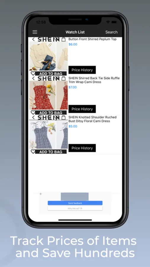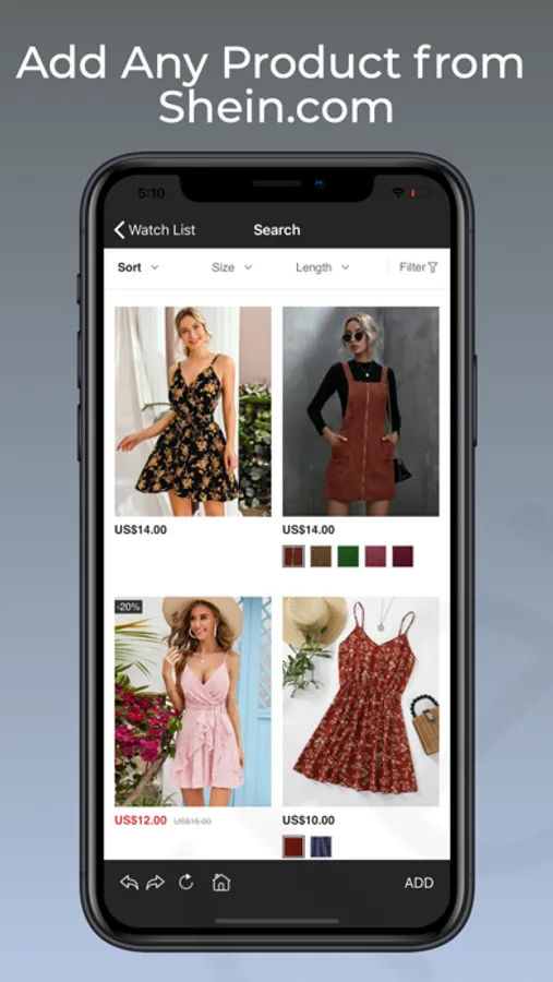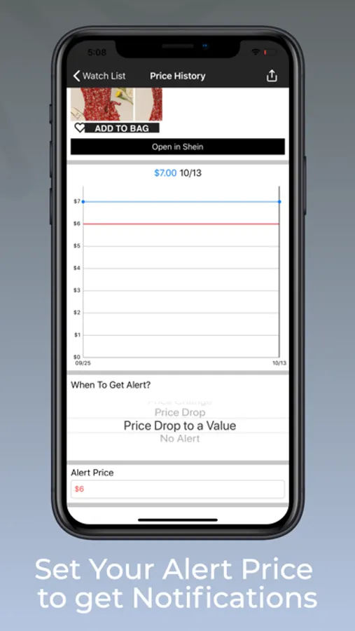 Add products from the Shein.com website to the watch list and track their prices. You will get notified when the price drops to the price you select.