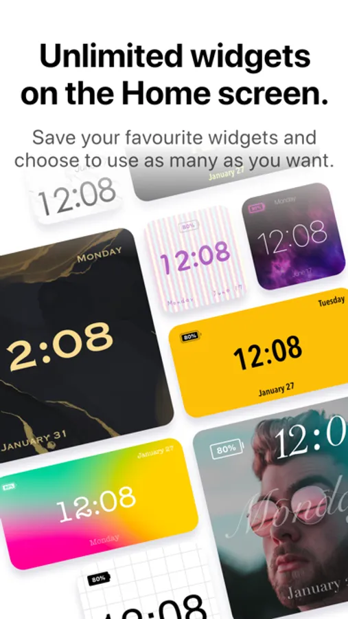 Widgets PRO are Photo, Date, Time Widgets that help you create unique style Home Screen.