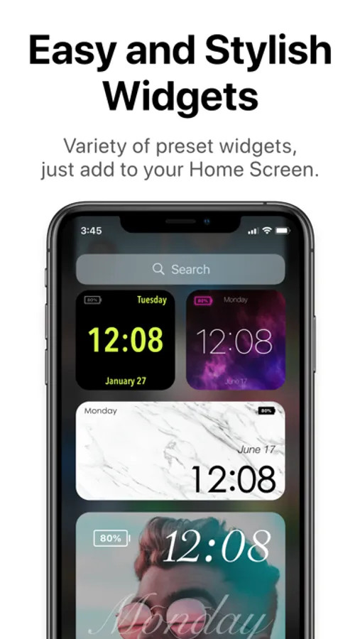 A lot of preset widgets to use instantly or just simple change background to your own photo.