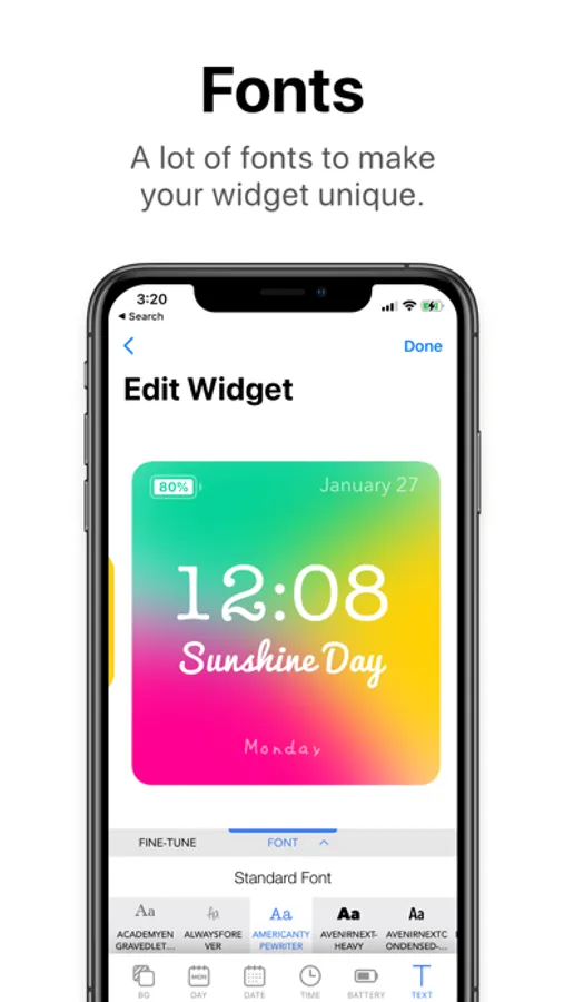 Adjust and customize any text and information to make it unique only on your Home Screen.