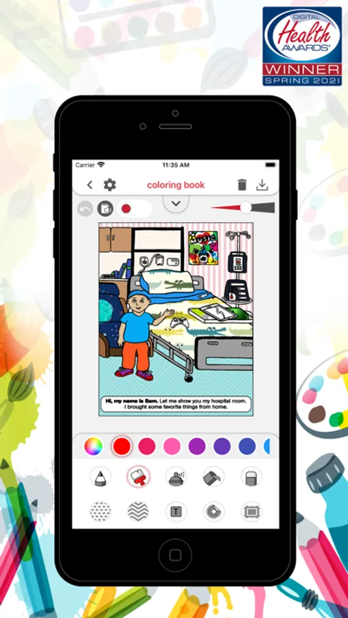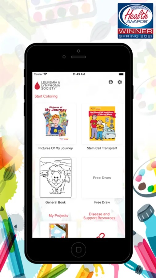 The app includes blank canvases, general coloring pages, and pages from the LLS coloring books Pictures of My Journey—Activities for Kids with Cancer and The Stem Cell Transplant Coloring Book. This app can be used anywhere and may help pass time in waiting rooms or during treatment.