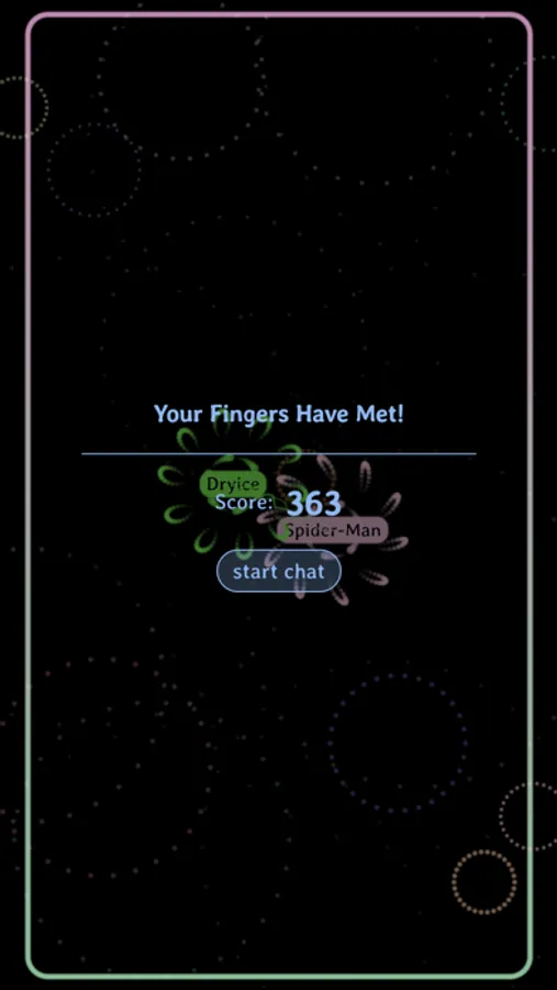 Fingers Meet is a simple social-network game. A chat chance will be a reward if a pair of players' screen touches getting close enough. Have fun!