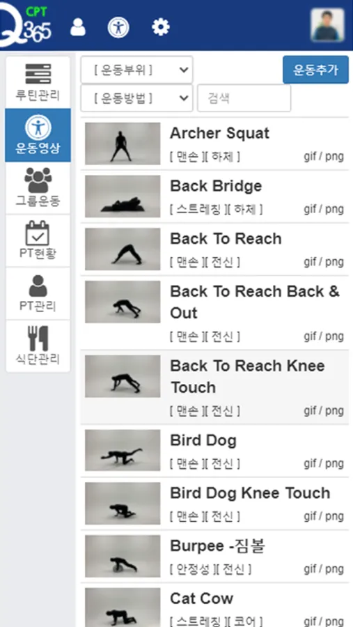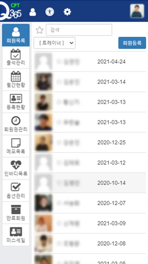 신개념 운동 시스템 Care Point Training System 트레이너/관리자용 어플입니다.