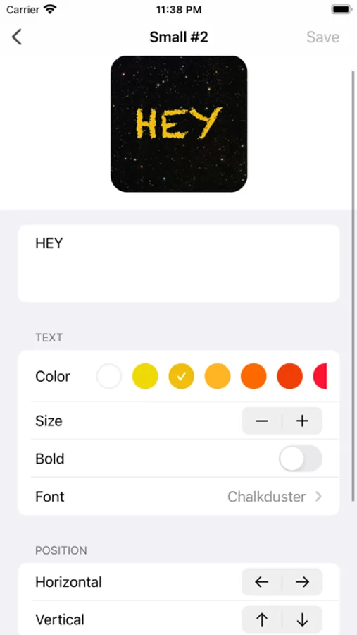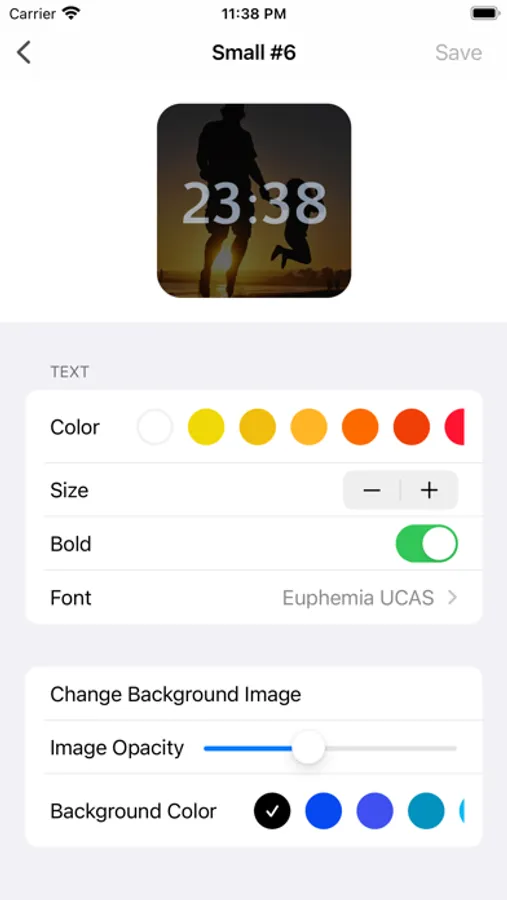 X Widget app features a variety of small, medium, and large widgets for functions like Photo, Photo Slideshow, Custom Text, Date, Time. Each one can be customized to your liking through choices of font, text color, and background color.