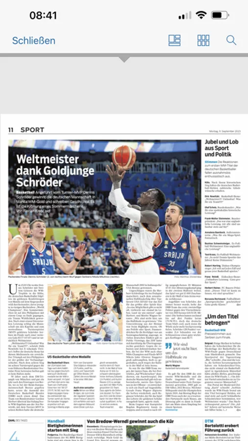 Auch finden Sie mit dem Update sämtliche Sonderpublikationen sowie Prospekte direkt in der App und bekommen mit Kurzversionen der interessantesten Artikel auf der Startseite einen schnellen Überblick über die wichtigsten Ereignisse des Tages.