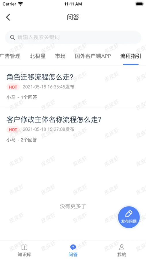 1、问答:支持员工快速了解公司产品的相关信息,或者发起提问。