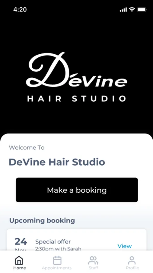 The DeVine Hair Studio app makes booking your appointments and managing your loyalty points even easier. You're just a few taps away from feeling good and looking great!