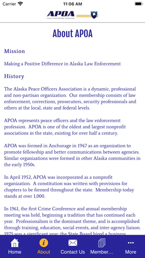 This app is intended as a communications tool for members of the Alaska Peace Officers Association, their leadership and the citizens they serve. To that end, the app includes the following: