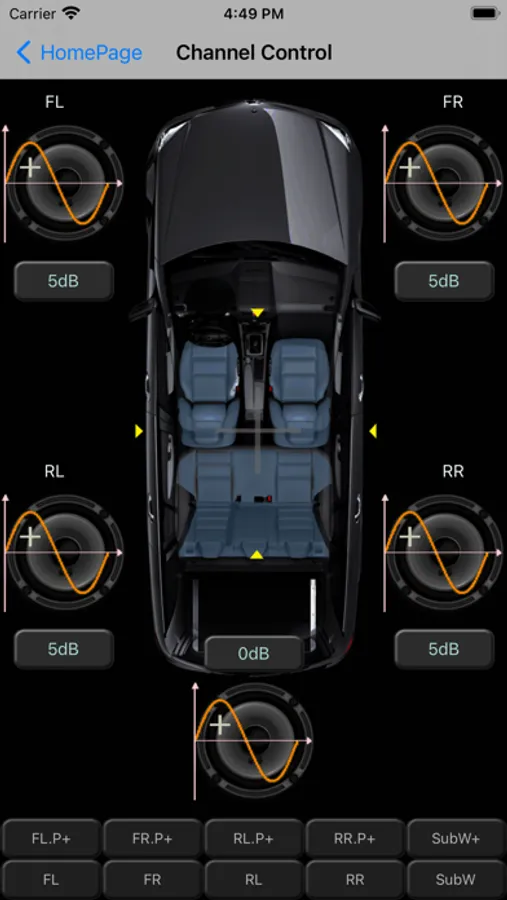 • 5 channel control: Gain, Phase switch and Mute function for each speaker