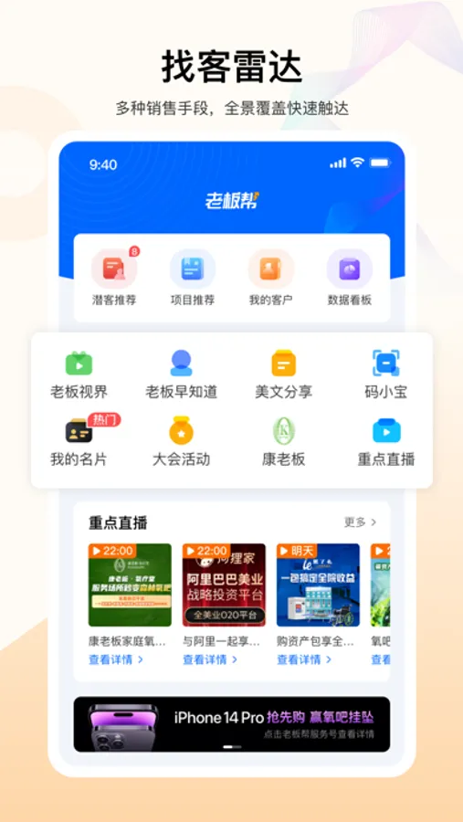 老板帮是全面赋能营销伙伴,提供营销管理工具,提升营销效率。