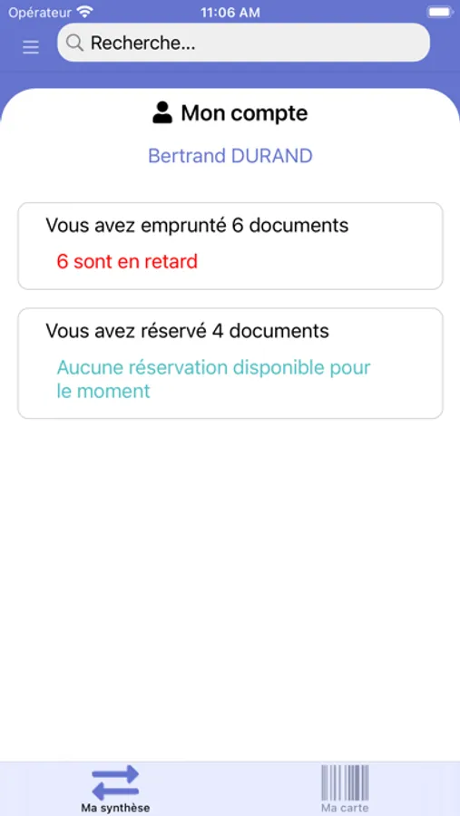 *consulter un résumé de l'état de votre compte emprunteur : vos prêts et réservations en cours ou en retard